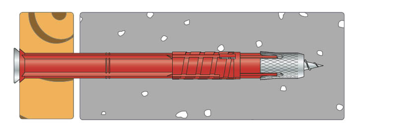 Benyttes inddørs til fastgørelse af køkkenelementer og forskallingsbrædder mv. til porøst murværk eller lign. Til montage i Leca forbores der 1 mm mindre end dyblens diameter. Dyblen indsættes gennem forboret hul i emnet der skal fastgøres og slås ind med en hammer hvorefter skruen spændes max. seks omgange hvorved dyblen ekspanderer i grundmaterialet.