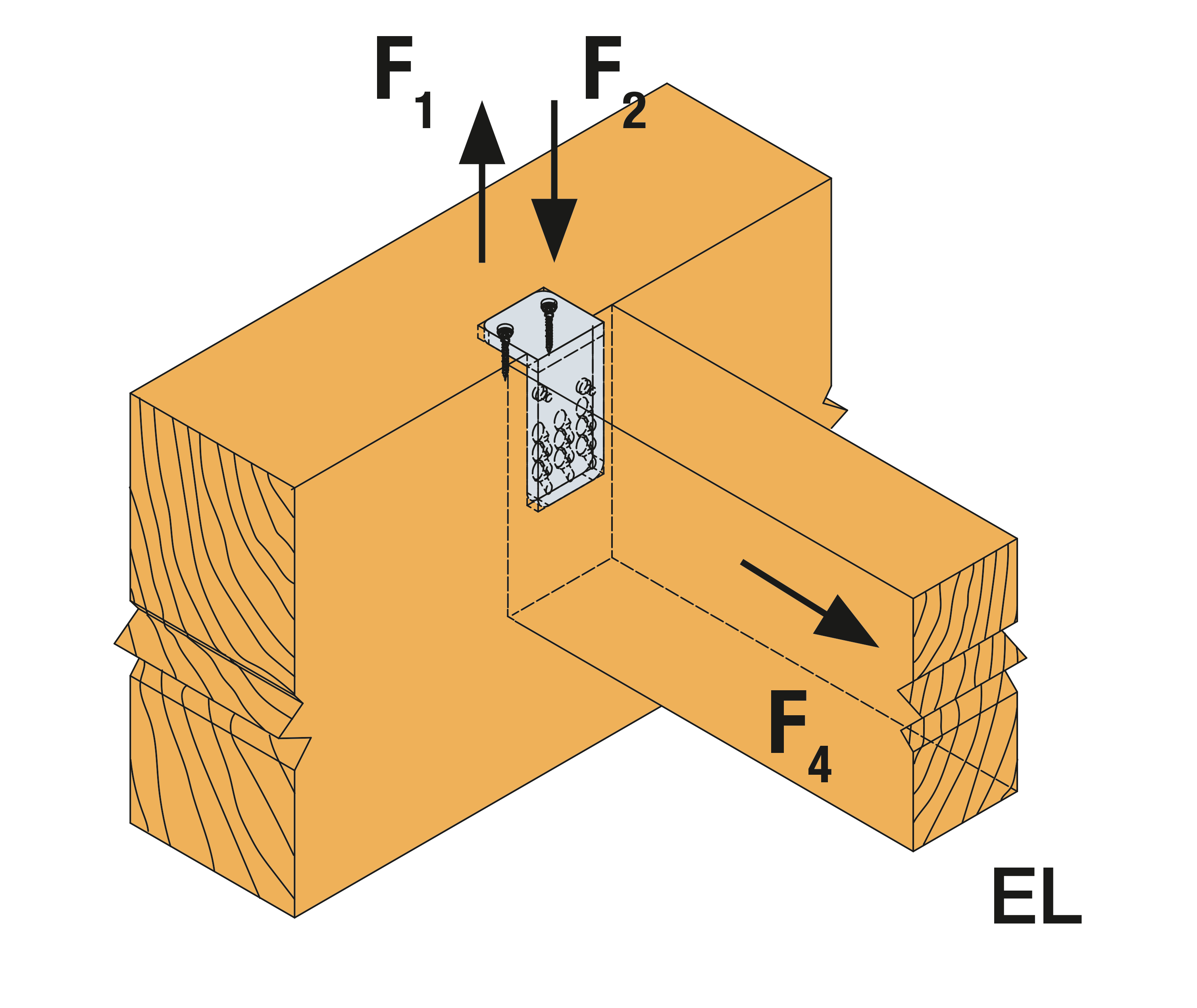 Endetræsbeslag EL anvendes til både træ-træ samlinger og til træ/beton samlinger.