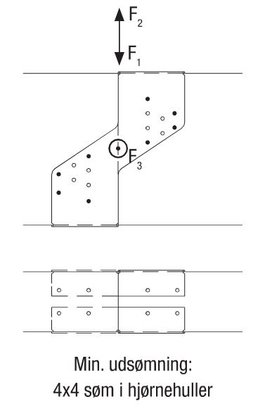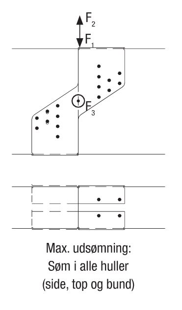 Beslagene, der er forsynet med Ø 5 mm huller, fremstilles i højre- og venstreudgaver, der anvendes sætvis pr. samling. Beslagene skal orienteres mod nærmeste understøtning.