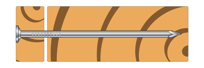 Firkantede søm anvendes til de fleste sømsamlinger ved træ mod træ, fordi de har en høj styrke ved forskydning.