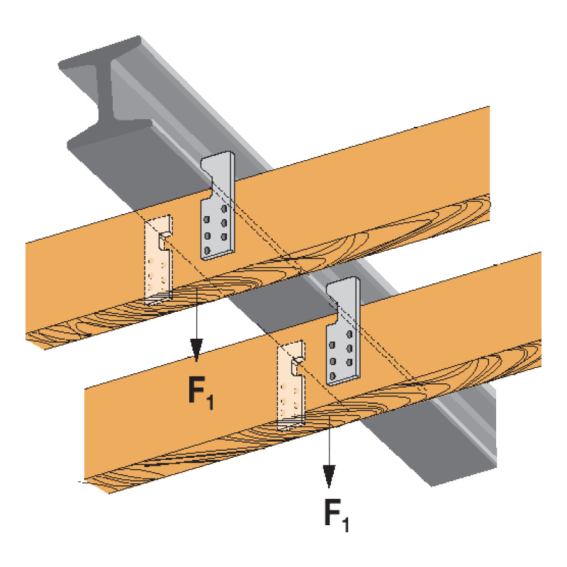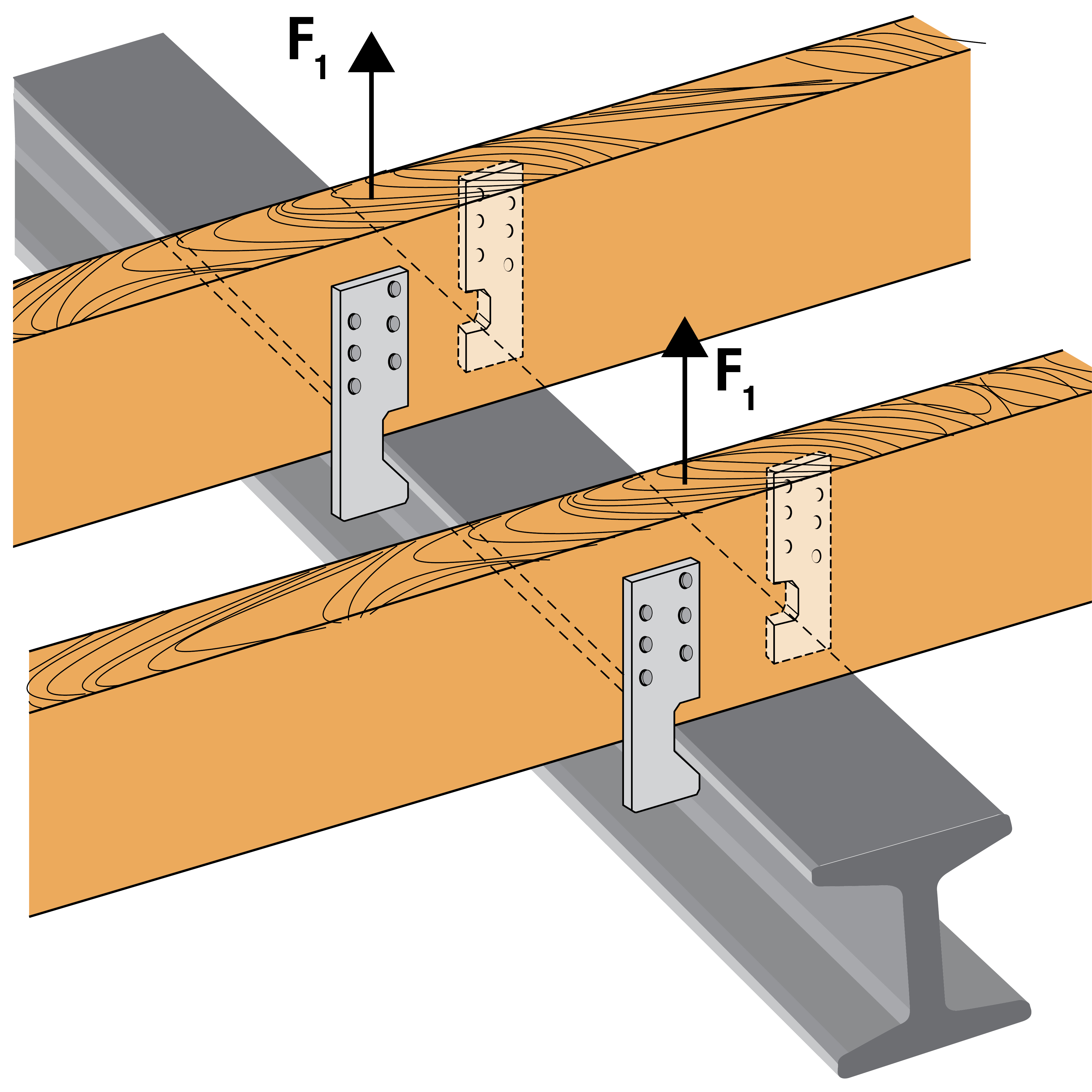 Der monteres to stk. HE-ankre pr. samling diagonalt overfor hinanden. Det skal sikres, at beslagene har fuldt vederlag på stålbjælkens flange.