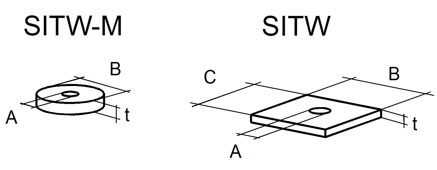 • SITW-cirkulære skiver: Fås i to diametre, disse er til brug i forbindelse med strukturelle skruer
