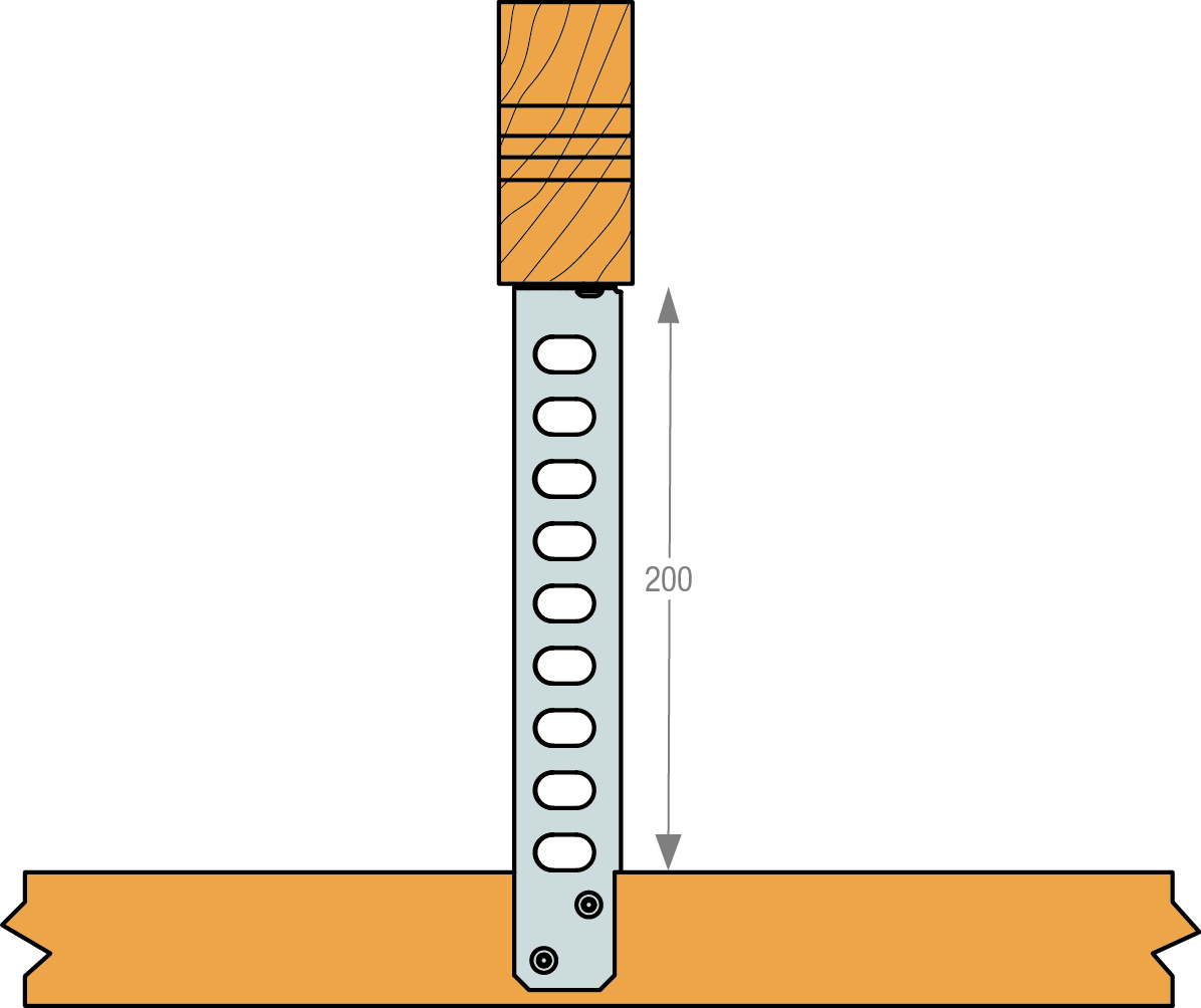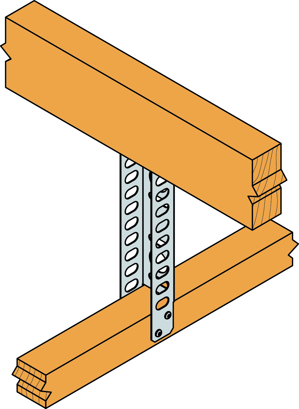 Nedføringsbeslag til sænkning af lofter for tekniske installationer. Produktet er designet ud fra Eurocode 5 og overholder krav til kantafstande.
