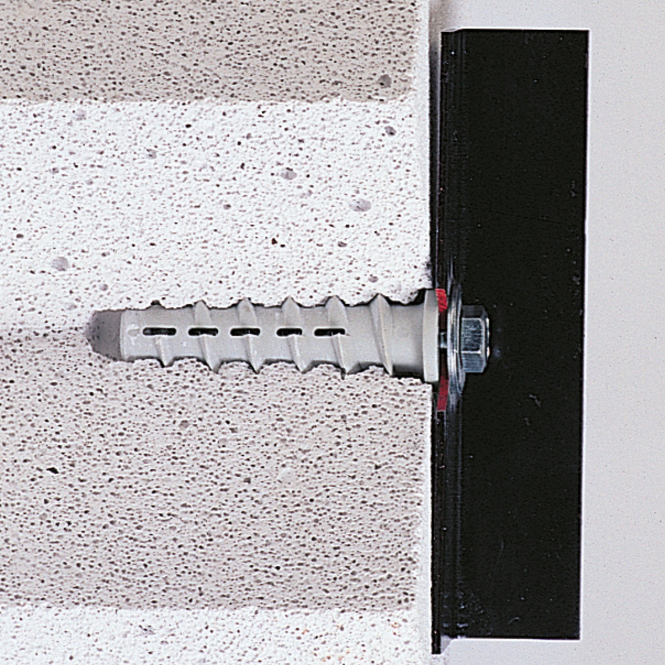 TML dybel Ø10 – Ø12 er specialdesignet til brug i gasbeton. Dyblen skrues i der forborede hul i gasbetonen hvor det grove gevind skærer sin ind i materialet. Herefter fastgøres emnet der skal fastholdes, men en træskrue eller metrisk bolt.