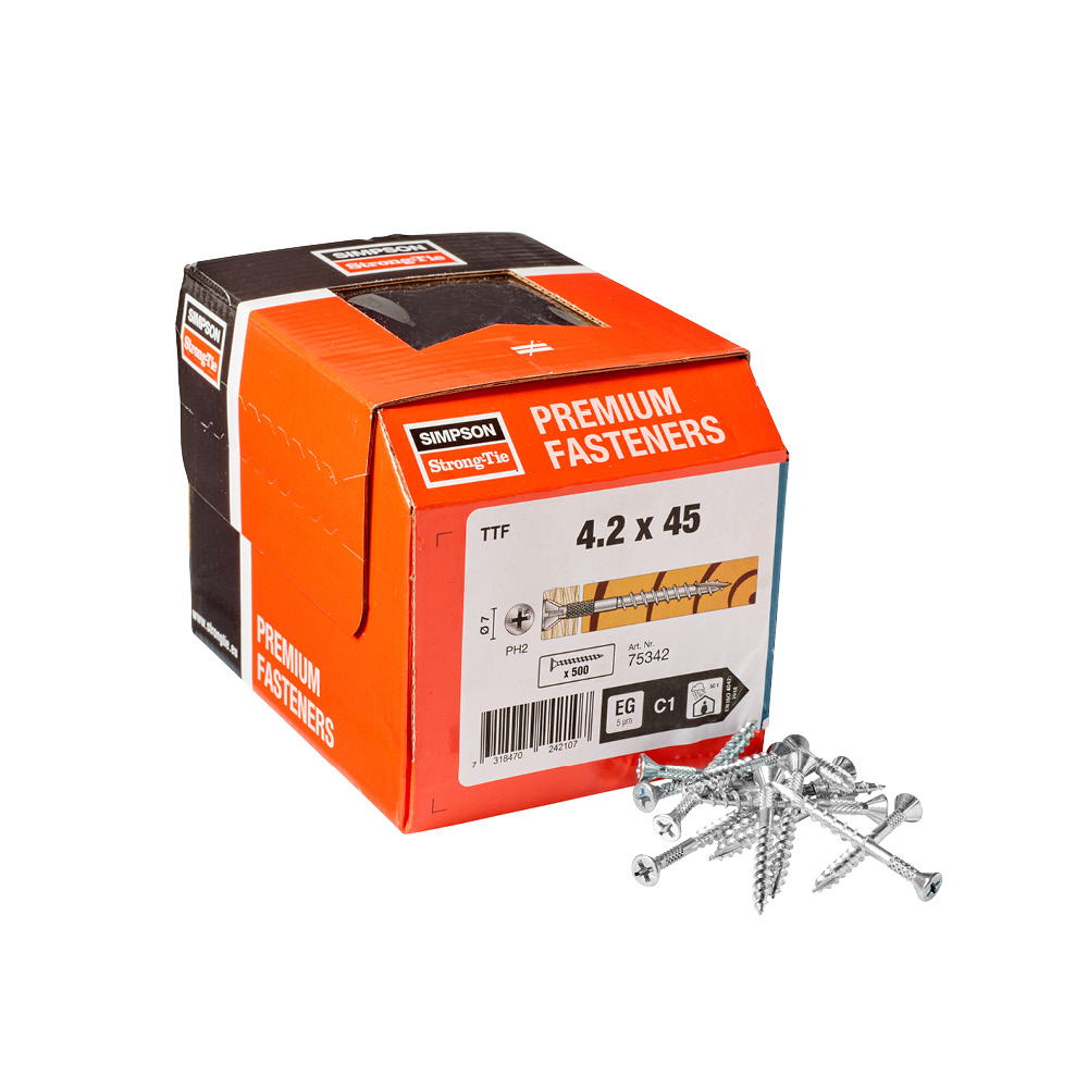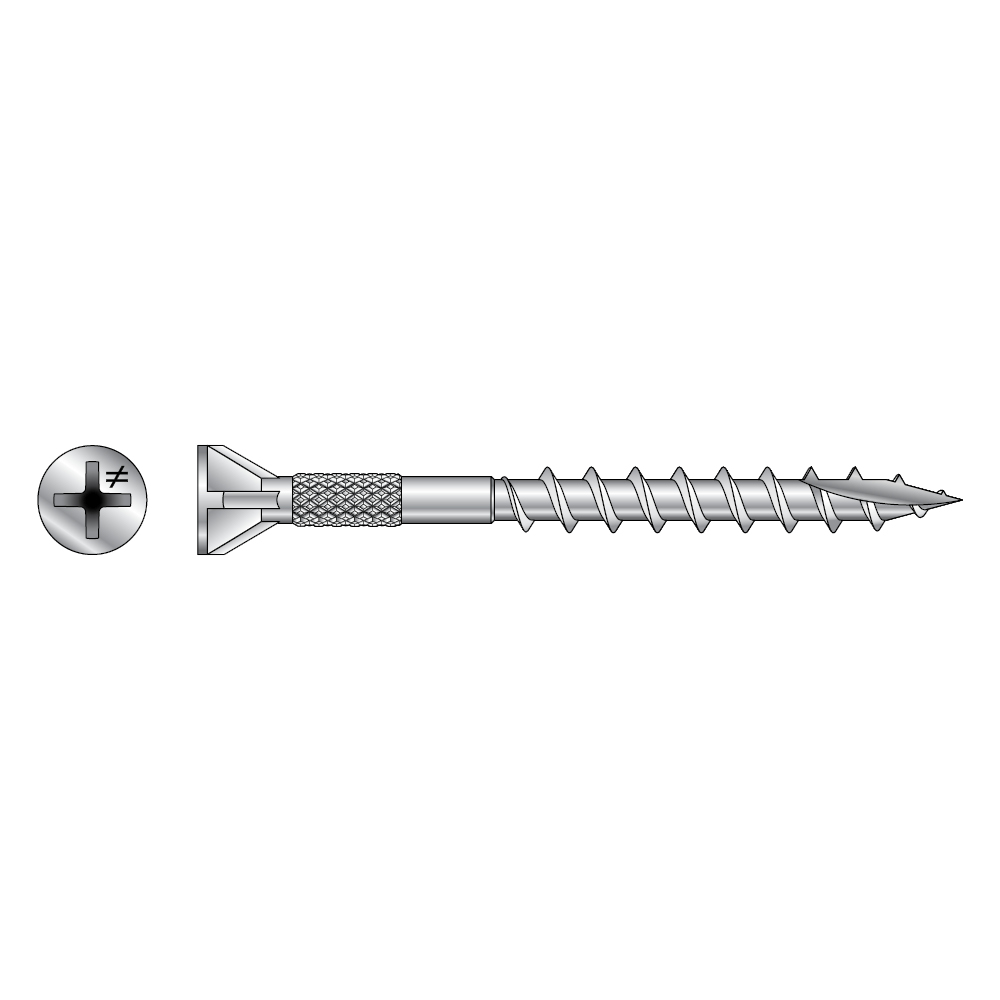 Pladeskruen anvendes indendørs og er udstyret med fiber-cut spids som driver skruen ned i de hårde spånplader og lignende. Skruen har et rifflet felt under hovedet som frigør skruen fra pladen hvorved man elimerer risiko for at gulvet begynder at knirke.