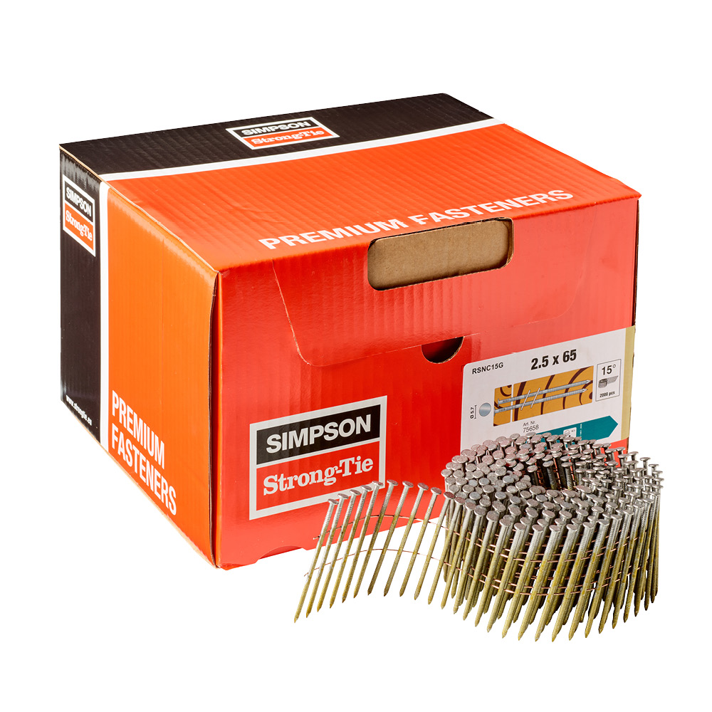 Ramme-søm 15° trådrulle - Rund hoved, ring skaft - HDG