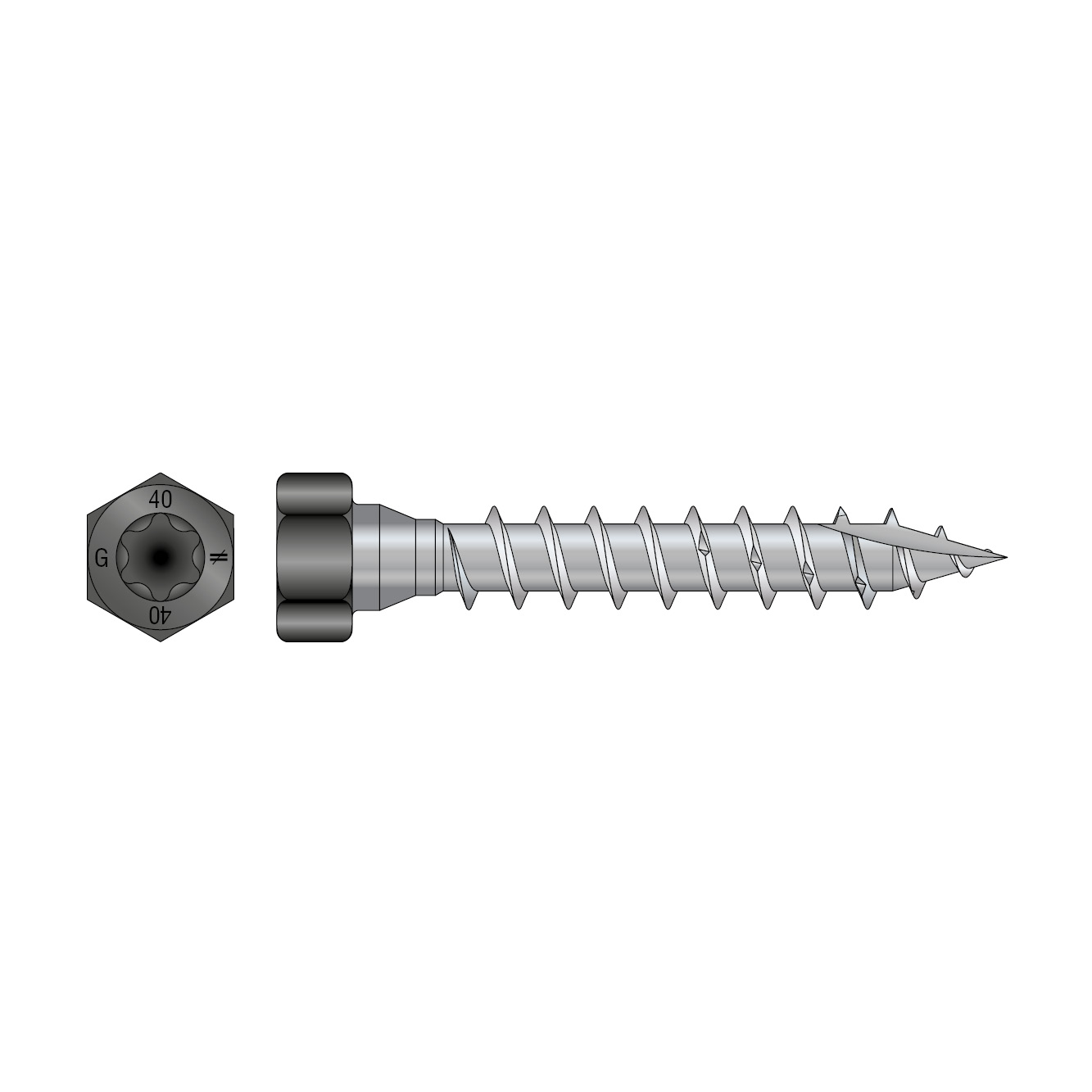 The conical shape under the head makes a perfect fitting to the connector hole, creating a firm assembly. Suitable for exterior use. The cut point type 17 prevents cracking, and the milling thread and serrated thread reduce the insertion torque. SSH has both 6 lobe drive and a hexagonal head, enabling mounting both with bits or with sleeves.