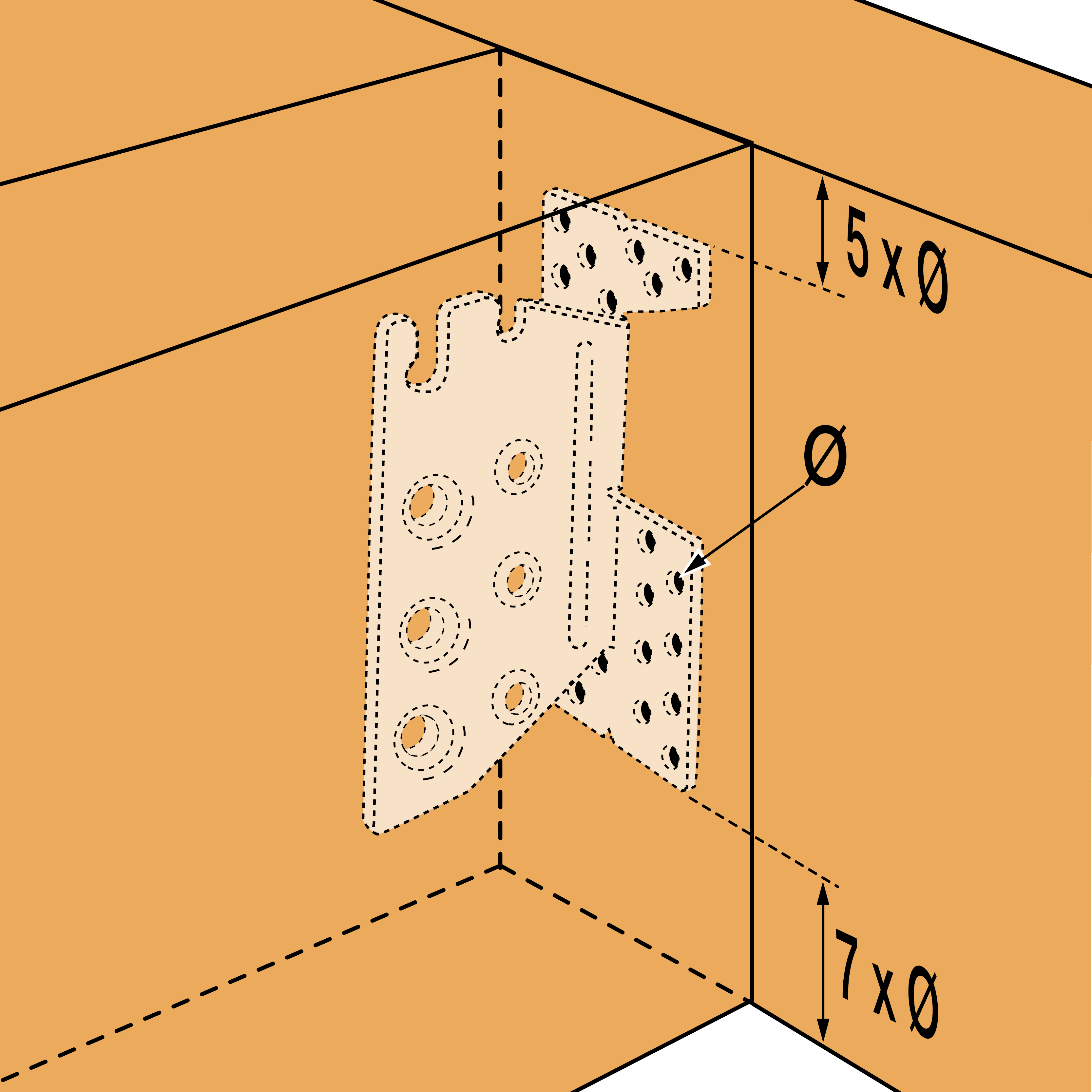 - Bjælken fastgøres nu helt ved at banke de sidste dorne i med en hammer. Antallet af dorne skal selvfølgeligt svare til beslagets udformning og dette katalogs udsømningsanvisninger, sådan at bæreevner mm. kan dokumenteres.