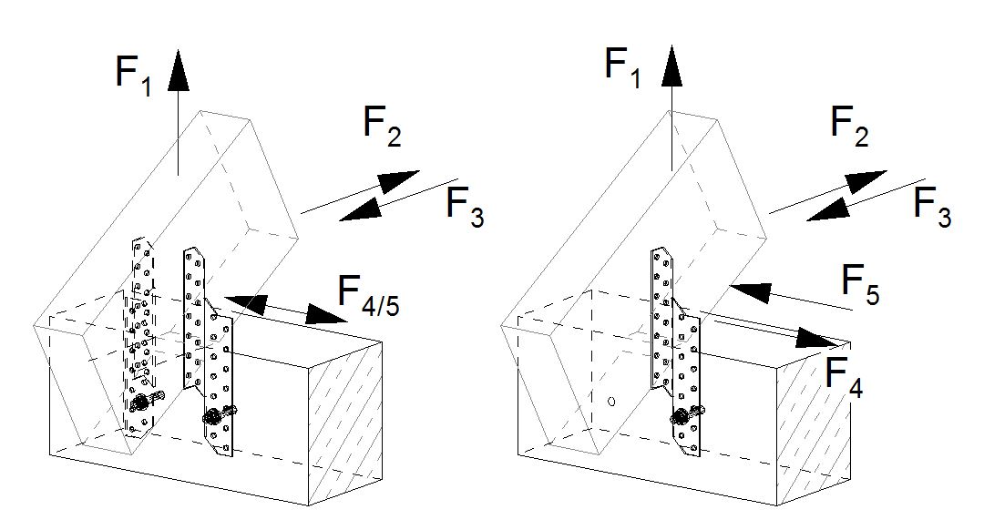 Hvis åsen er forhindret i at rotere, vil bæreevnen R1,k i en samling med kun et SPF tagåsanker være halvdelen af bæreevnen i en samling med to ankre. Hvis åsen kan rotere, se ETA’en på vores hjemmeside