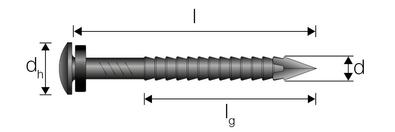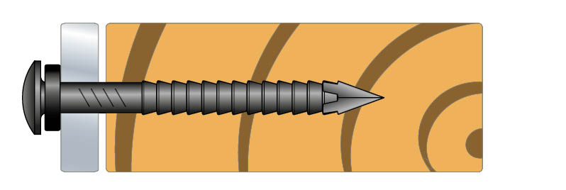 Riflet søm med linsehoved og tætningsskive til udendørs montage af metalprofiler på træ.
