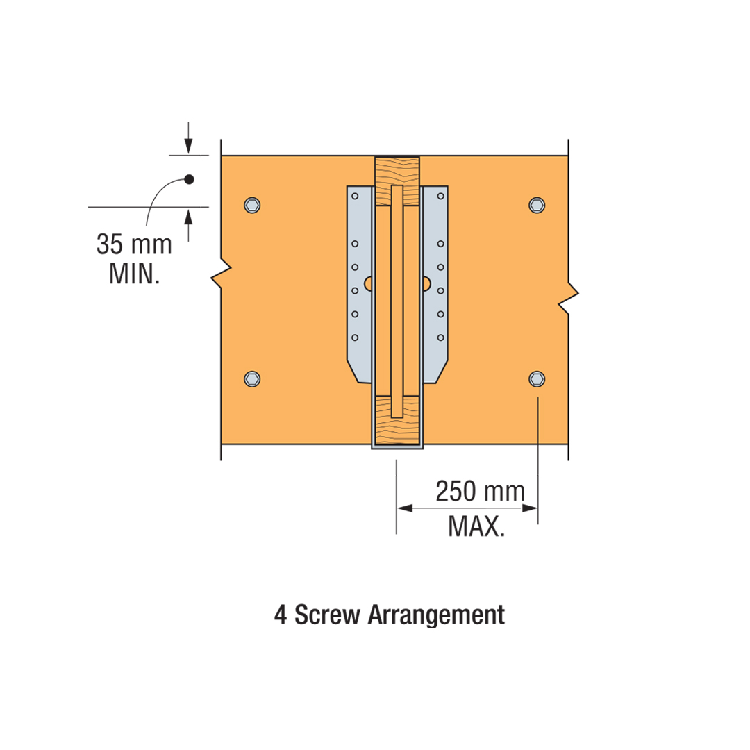 - Screw axis between 45° and 90° from timber grain for ESCR(XXX), and 90° from timber grain for all other screws.