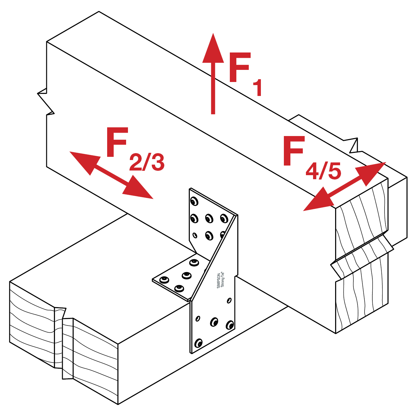 Universalbeslagene anvendes i bjælke-bjælkesamlinger. Når der anvendes to beslag pr. samling, skal de placeres diagonalt overfor hinanden. UNI96 er anvendelig til krydsende samlinger med spærtræ og reglar i 45 mm bredde.